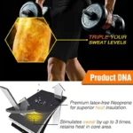 Neoprene thermal fabric helps trap body heat during exercise, promoting increased sweating to support water weight reduction.